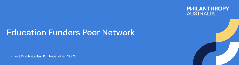 This event is for Philanthropy Australia Education Funders Network members only. If you are not yet a Philanthropy Australia member or want to learn more about the philanthropic work in this area, please reach out to programs@philanthropy.org.au. session.